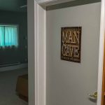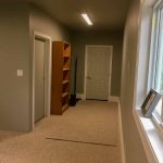 Terry and Roger came over one day and hung my very heavy fire-rated interior door, and trimmed all my windows and doors. This not only saved me a huge amount of time, but they did a much better job than I possibly could have. I spent several more evenings and weekends on the rest, and came up with a good solution for dealing with the base row of block. At this time, I was also able to get my final electrical inspection done. The final finishing touch was some custom curtains from mom 🙂